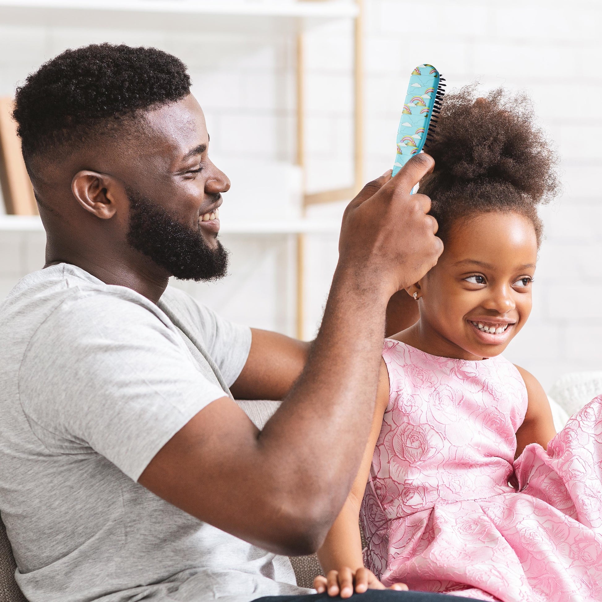 - Includes 1 mixed bristle detangling brush for everyday use, featuring assorted Afro Unicorn icons and designs.